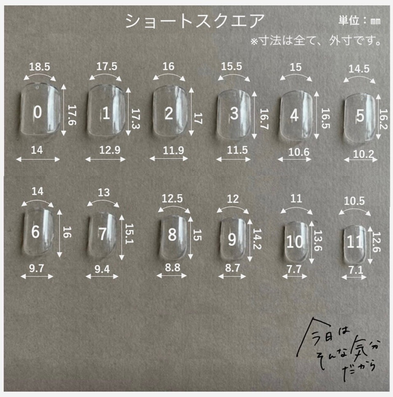 ・ショートスクエア・・・サイズは、0~11